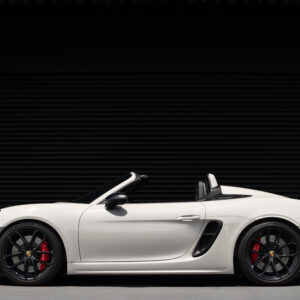 ポルシェ718スパイダーは鼓動を加速させる究極のドライビングマシンだ。4.0リッター水平対向6気筒エンジンが420馬力を解き放つ。ミッドシップレイアウトと手動のオープンルーフなどにより徹底的に軽量化されたボディが生み出すのは、コーナーを切り裂く鋭いハンドリングと病みつきになる加速感。 ポルシェ・アクティブ・サスペンション・マネージメント(PASM)やトルクベクタリング(PTV)が標準装備、路面を意のままに捉え車を完全に支配する感覚をドライバーへ与える。 風を切り裂く流麗なデザイン、手動の軽量ソフトトップが開く瞬間の高揚感とオープントップならではの解放感。 718スパイダーはただ走るためでなく、生きる歓びすら味わうことができるエモーショナルなマシンだ。 この感動をぜひあなたの手で。