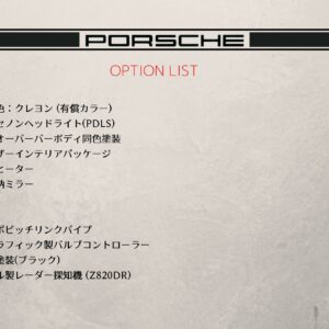 911タルガ4S(991.1)NAタルガ 希少車 パワーアップKIT ラストNASOLD■過去整備歴保管状況■ ドライバーズマニュアル、保証書、スペアーキー全て揃っております。 整備記録簿 ポルシェセンター H27,28,29,30,31,R1,R2年 当社提携先&自社ファクトリー R2,3,4年 ■車両状態■ カーセンサー認定 4.5点評価(事故および修復歴無し)全体的に艶もしっかりとあり、大きな傷や凹みのない綺麗なコンディションです。フロントバンパーには若干の飛び石傷がございますが、許容範囲といえます。 強いて言えば、ボディガラスコーティング施工後1年半ほど経過していますので、薄い洗車傷も見られますので、ボディガラスコーティングの再施行をお勧めします。 内装に関しては、前オーナー様が丁寧にご使用されており、多少の使用感は見られるものの綺麗な状態をキープしております。 ■納車整備前整備プラン■ ・法定12ヶ月点検 ・エンジンオイル&オイルフィルター交換 ・ワイパーブレード交換 ・エアコンフィルター&キャビンフィルター交換 ・PDKオイル交換 ・スパークプラグ交換 ・バッテリー交換 ・新品タイヤ4本交換(ピレリーPZERO ポルシェ承認) ・ポルシェ最新テスターによる診断及びインターバルリセット