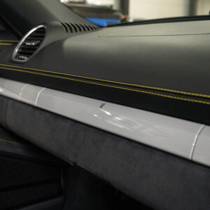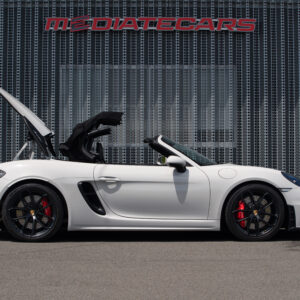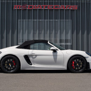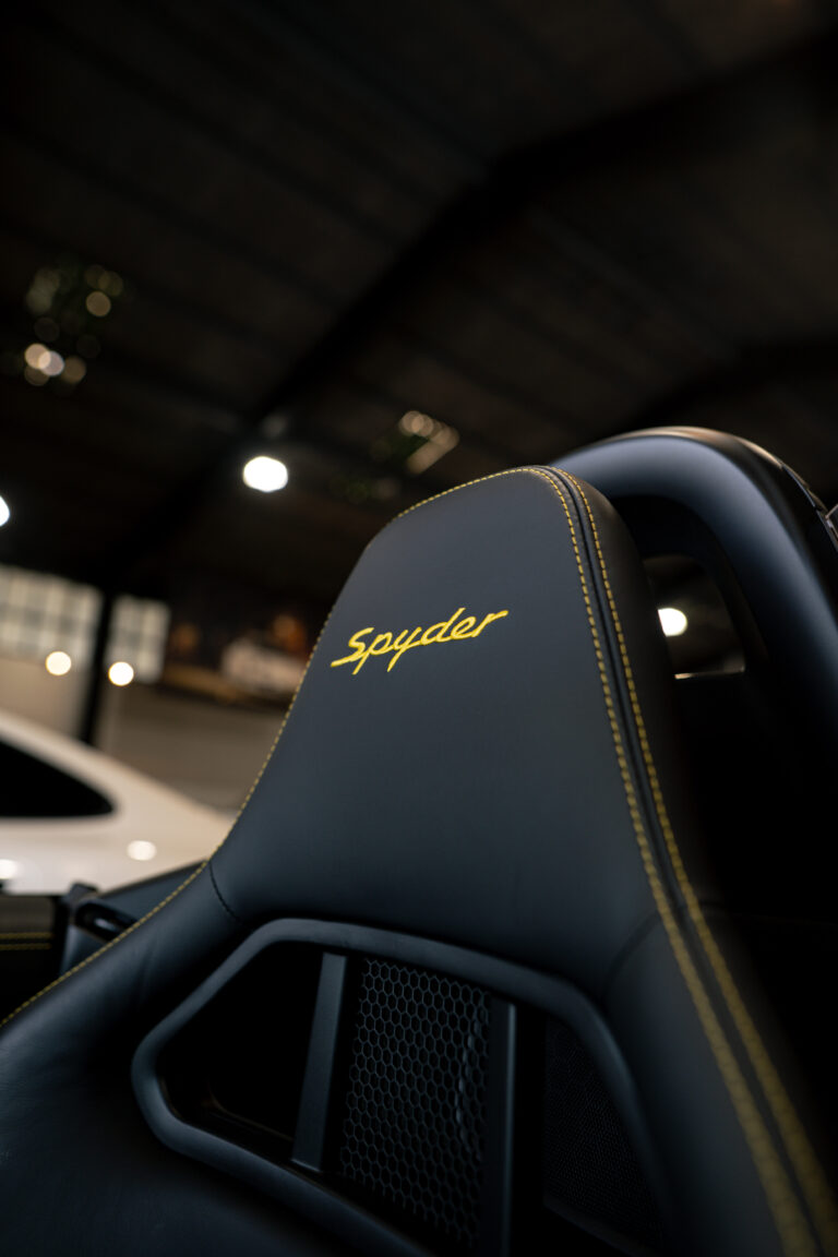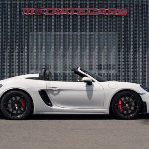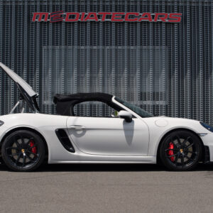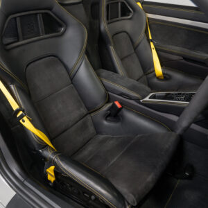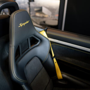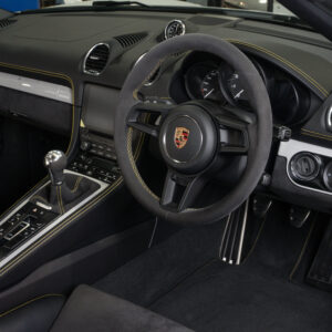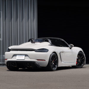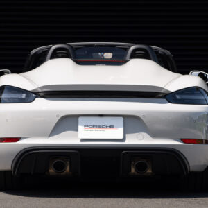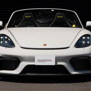 水平対向4気筒ターボエンジン化された718シリーズに対してポルシェファンから賛否様々な声が上がった。 そんな中、誰もが「やっぱりコレだよ」と納得させられたエンジンが積まれているのがこの718スパイダー。 この4.0L 水平対向6気筒NAは低速からトルクフルでとてもスムーズに走り出し、8,000rpmまで綺麗に吹け上がる。アクラポビッチリンクパイプとカーグラフィック製バルブコントローラーが奏でる快音はドライバーの高揚感を純正以上に掻き立てる。 そして981世代から進化したシャシーはよりソリッドで引き締まっており、ドライバーのハンドル操作に対して瞬時に頭の向きが変わってくれるレスポンスの高さは病みつきで、カーボンバケットシートのホールド感も相まってまさにこれぞ"人馬一体"と実感させられる。ワインディングなどをオープンエアーで気持ちよく流せばこれ以上ない最高のドライビングプレジャーが体感できることは安易に想像できる。 ボディ色は人気のクレヨンで、フルレザーパッケージにイエローステッチのコントラストが映える内装は高級感とスポーティさを十分に演出しており、走りだけでなく所有満足度もとても高い。 抜け目がない718スパイダーがここに。