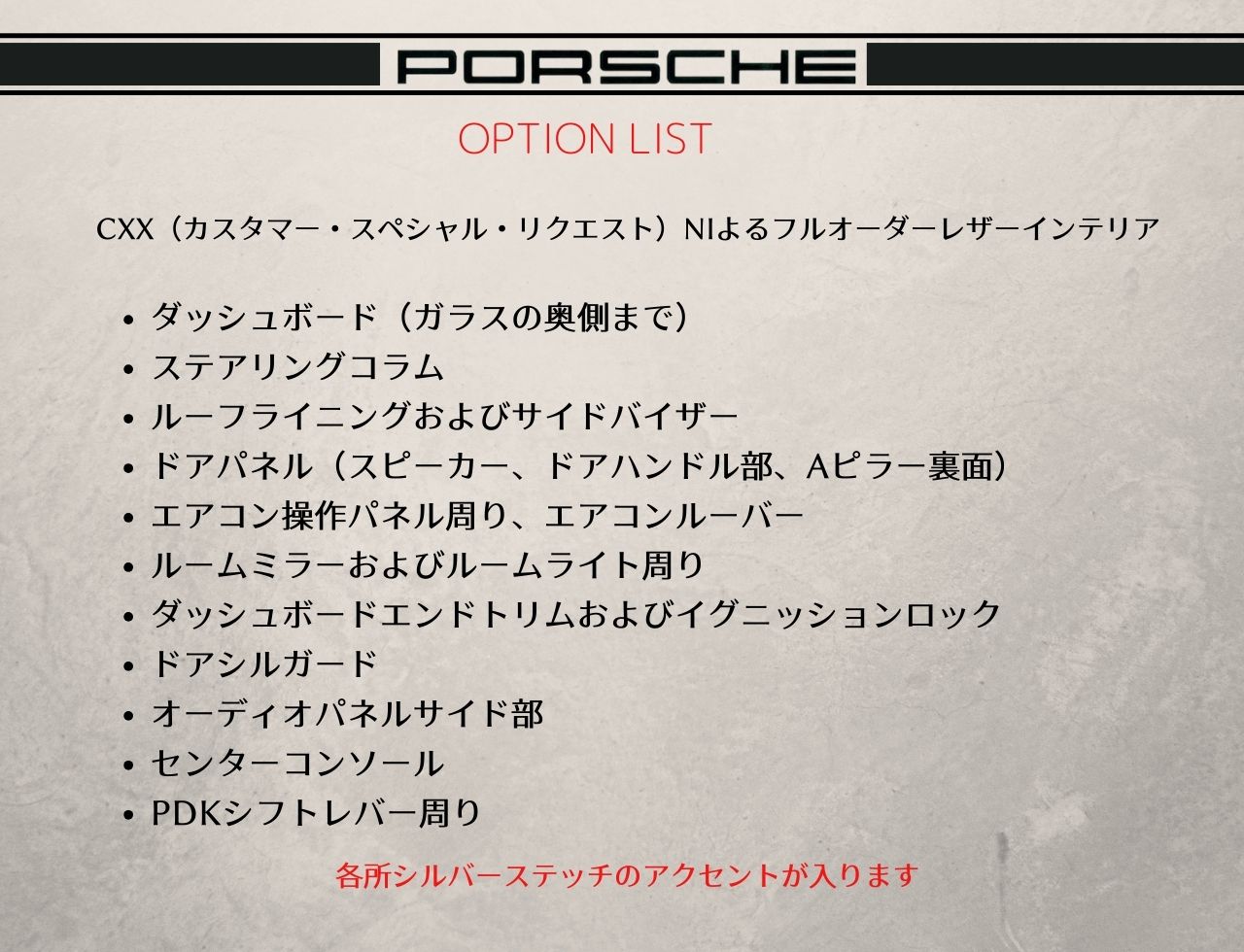 - 特別装備 PCCB PDK スポーツクロノPKG CXXレザーインテリア