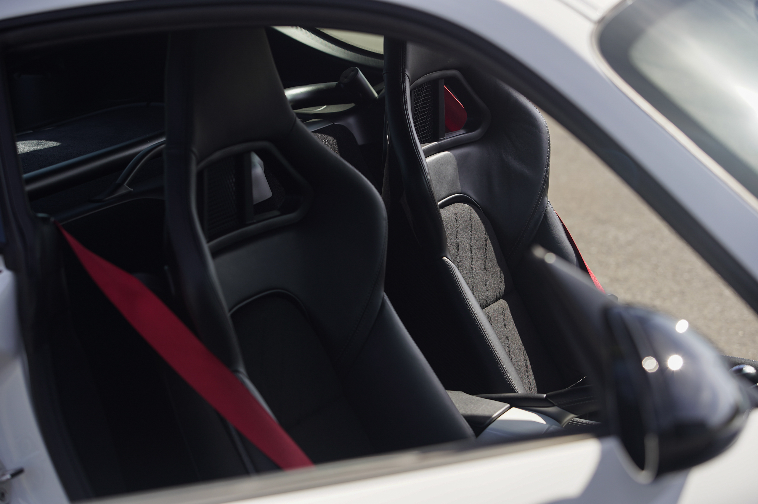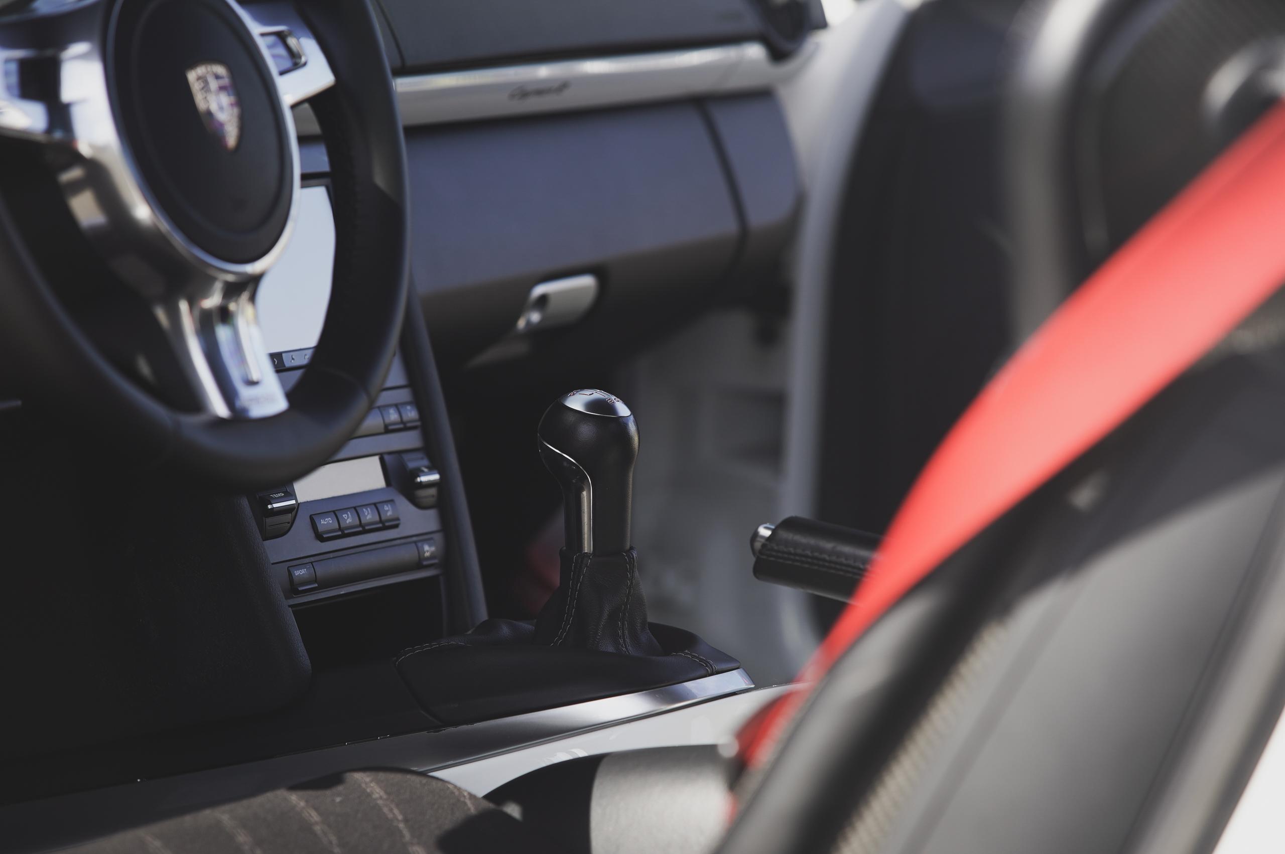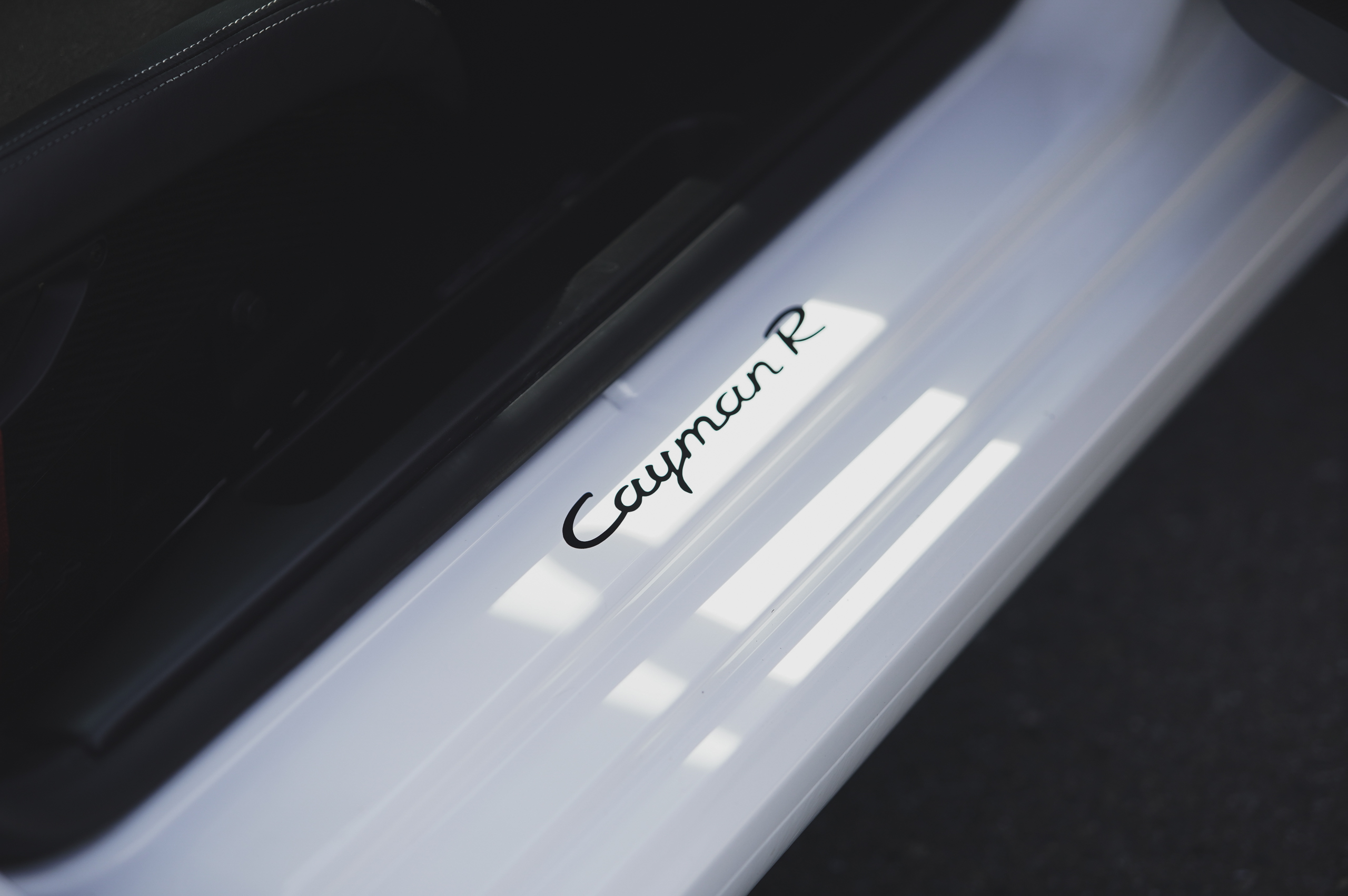 987型ケイマンの集大成とも言える限定モデル。後にも先にもケイマンの後ろに”R”の称号は付くのは、このケイマンだけ。その”R”の称号を与えられた中身を見てみると意外な事実が分かる。まずはエンジンパフォーマンスだが、ケイマンSの3.4Lをベースにファインチューンと呼ぶべきプラス10psの330psにパワーアップにとどまっている。スペシャルモデル(限定)であれば、レギュラーモデルとは、一線を画すパワーアップが定石通りだが、意外にも控えめ。ボディ関連はどうか?通常モデルには無いアルミ製のドアパネルや、軽量タイプのカーボン製セミバケットシート、本来であればエアコンやオーディオまでオプション化されているので、そこまで徹底すればトータル55kgの軽量化となるが、そこまでストイックになれる個体は中々いないのが現状で、当車両もエアコンとオーディオシステムは装備している。足廻りに関しては、ボクスタースパイダー同様に専用のセッティングが施されておりPASMは省略されている。
