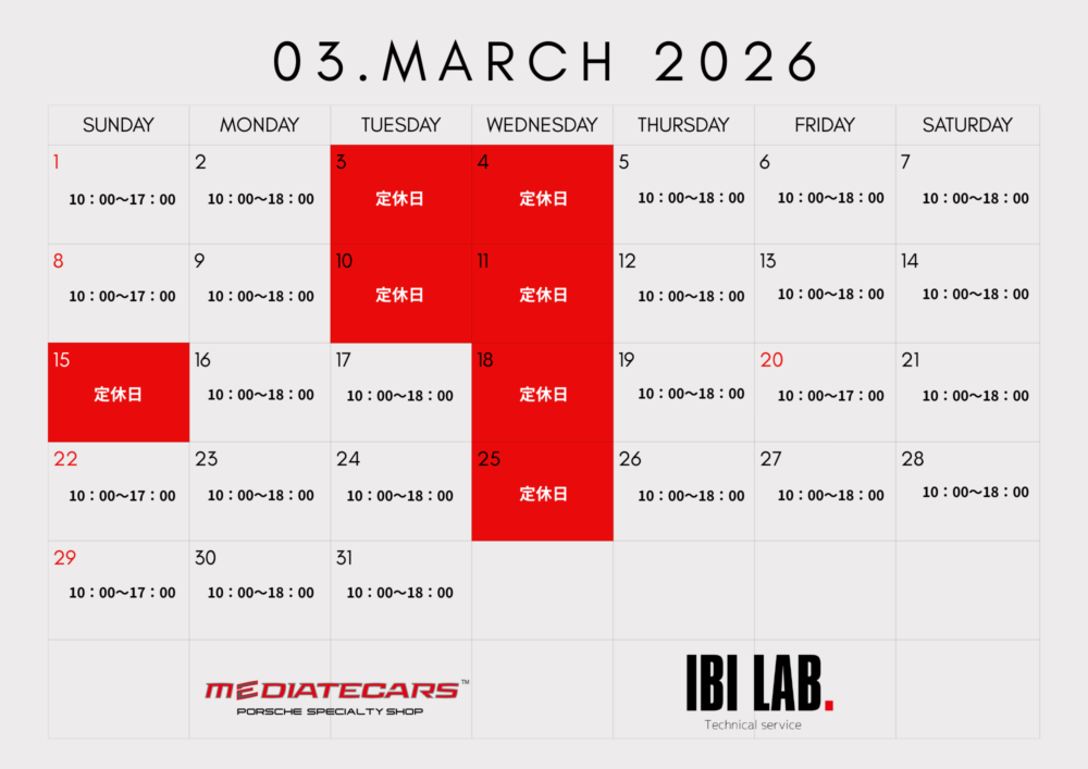 2026.03.05 3月の営業カレンダーをご案内いたします。 毎週水曜日、第一第二火曜、第三日曜が店舗定休日となります。ご予約、ご来店予定のお客様はご確認の上、店舗にお問い合わせくださいますようよろしくお願いします。 << 前の記事 一覧に戻る